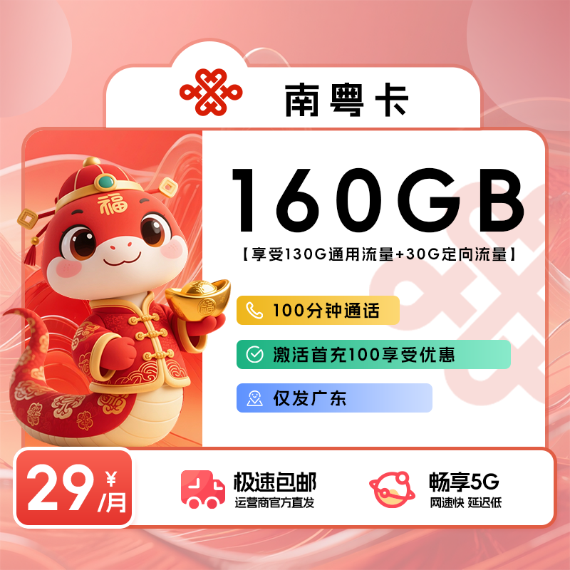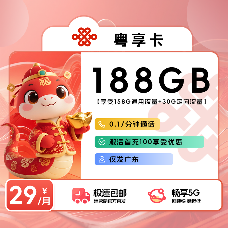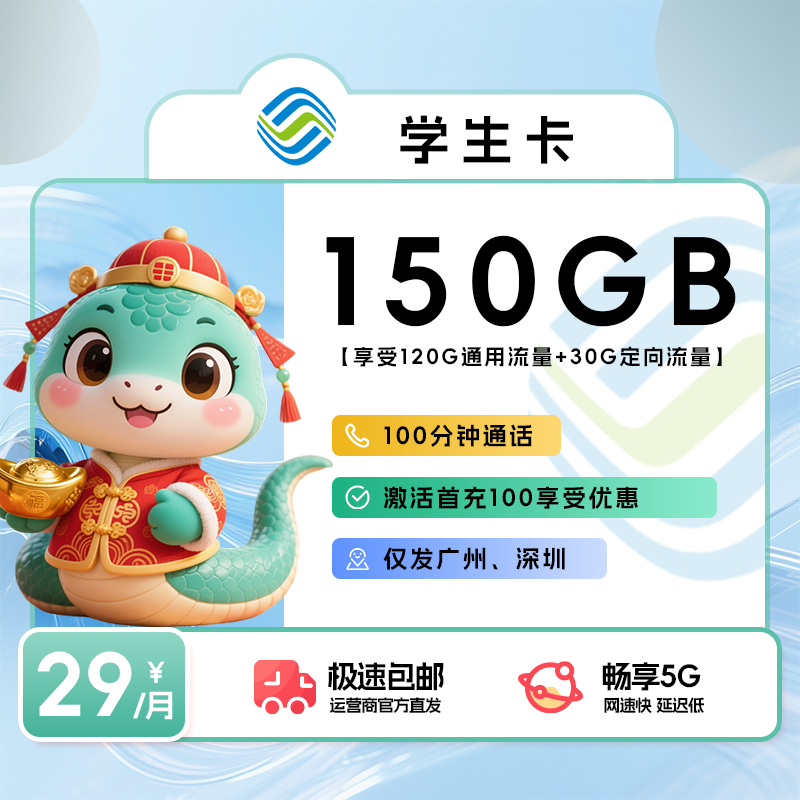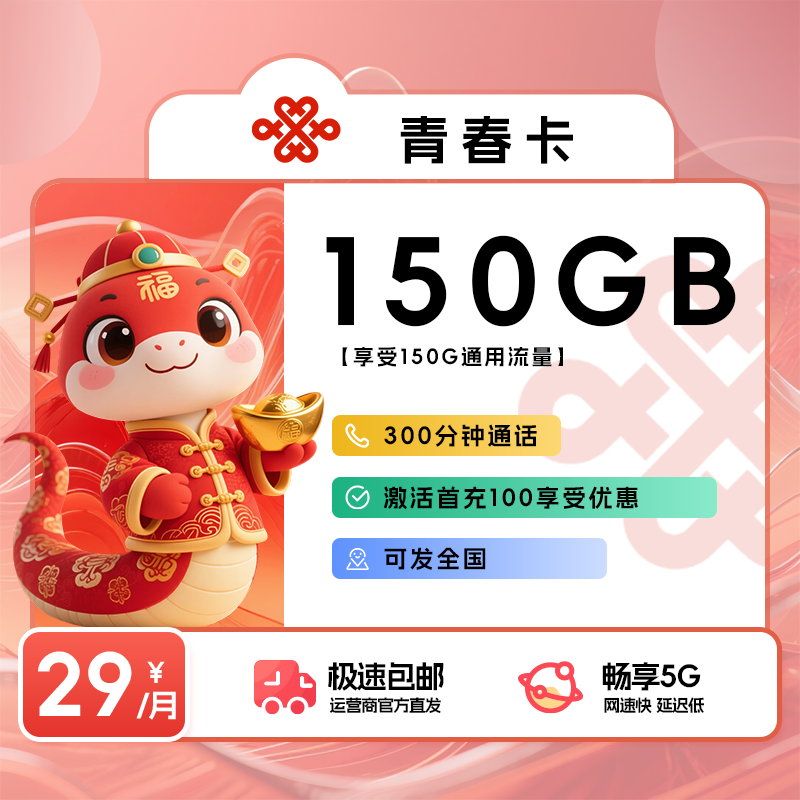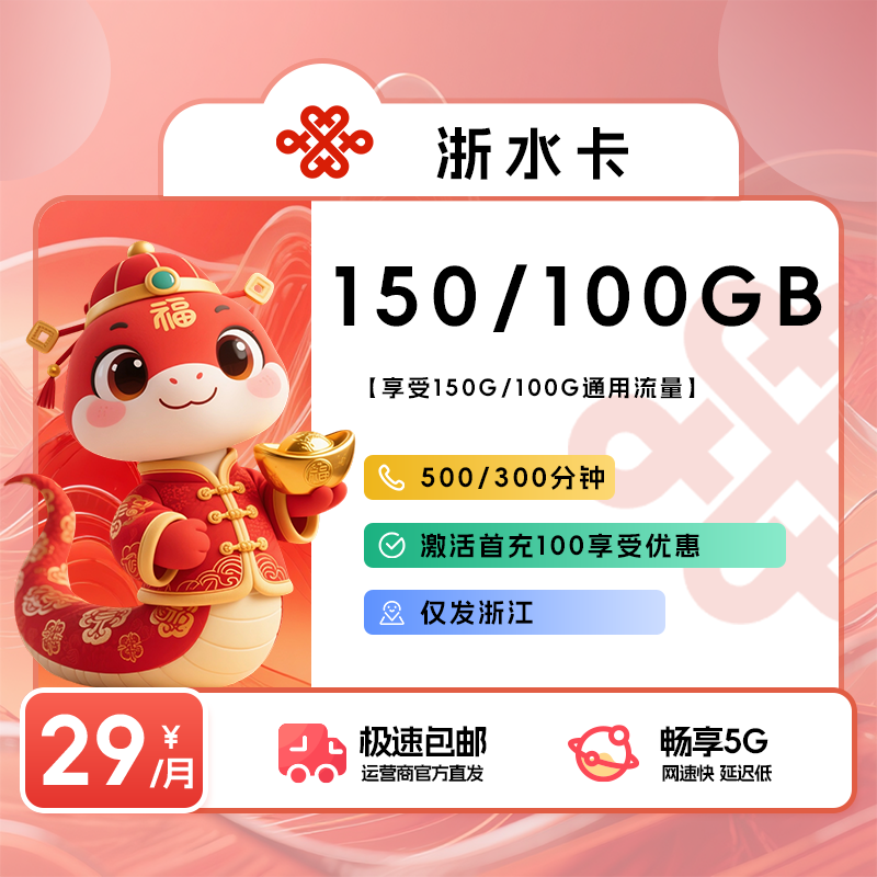 29元包150G/100G通用流量+500/300分钟通话+会员权益