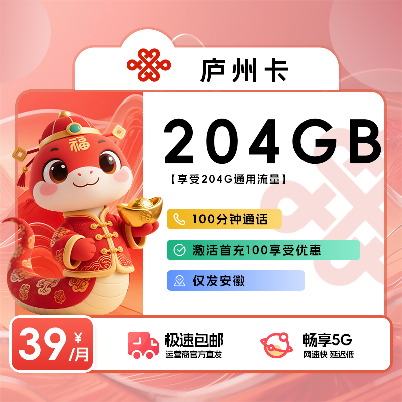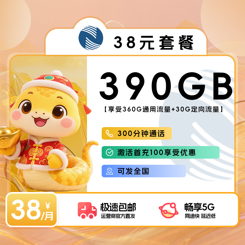 39元包215G通用流量+20G定向+100分钟通话(M)
