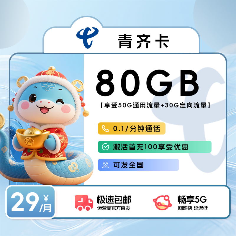 29元包50G通用流量+30G定向+通话0.1元/分钟