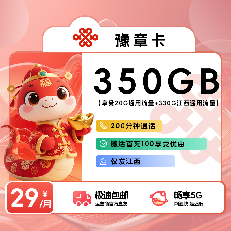 29元包20G通用流量+330G江西通用流量+200分钟通话
