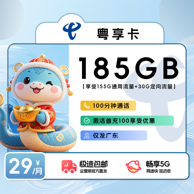 29元包185G通用流量+100分钟通话